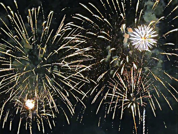 狭山池を舞台に色とりどりの花火が 夏の夜空を彩ります。