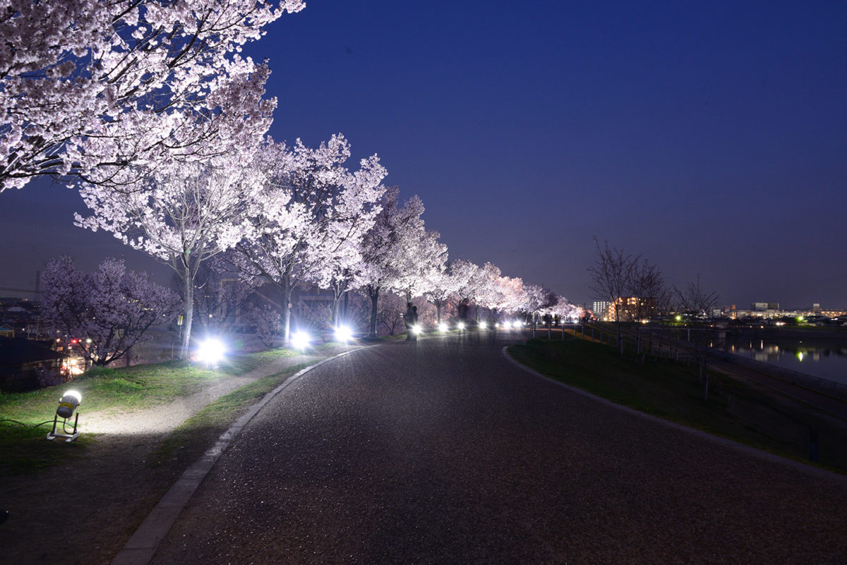 狭山池北堤に咲く桜の並木道がライトアップされます。